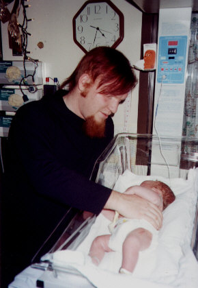 Born on the 10th day of december in the year of our Lord 2000. He was weighed in at 9lbs and 7.8 oz. Approx 20 and 1/2 inches long. with a head that was 37.2 cm in circumfrance. We now proudly present this child of God to you, the world at large.